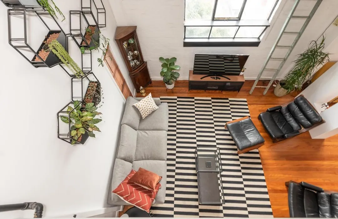 Fitzroy地区に位置するFitzroy Converted Warehouse Penthouseアパートメントアパートはテラスのある施設を提供しています。 この2のベッドルームのあるアパートメントには台所と1のバスルームがあります。